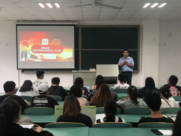 9月26日下午,经贸学院2019级学生军训动员大会在4A401举行。经贸学院党总支副书记乔正明,经贸学院负责国防教育的辅导员蒋涛以及2019级学生代表、退伍学生代表和班主任助理共同参加此次动员大会。