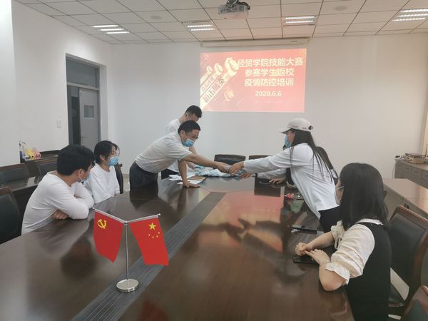 下午,经贸学院党总支副书记乔正明组织返校学生召开了疫情防控培训会。学工办主任冯益芙从校园管理、健康管理、用餐管理和宿舍管理四个方面做了详细说明,明确返校后学校将实施封闭式管理,严格落实晨、午、晚体温检测,密切关注自己的健康状况。乔正明鼓励学生积极认真备战、注意身体健康,以优异的赛绩回报学校。会上,乔正明还为家庭经济困难学生发放了口罩。