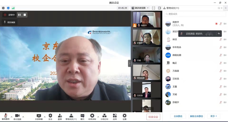 吴访升介绍了学校整体概况以及“十四五”期间的办学使命,他指出在数字经济发展和智改数转的大背景下,专业的转型升级需要与行业发展深度融合,希望经贸学院的相关专业能与京东集团开展深度合作,形成华丽转身,更好地适应行业和企业的发展需求。通过合作,创新产教深度融合、人才培养的模式和三教改革的方式方法。