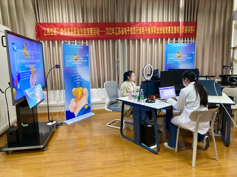 为全面贯彻落实中央和省委人才工作会议精神,培育知识型、技能型、创新型劳动大军,11月27日,“江苏工匠”岗位练兵职业技能竞赛活动2022年江苏省电子信息行业电子商务职业技能竞赛直播销售员赛项总决赛在我校成功举办。