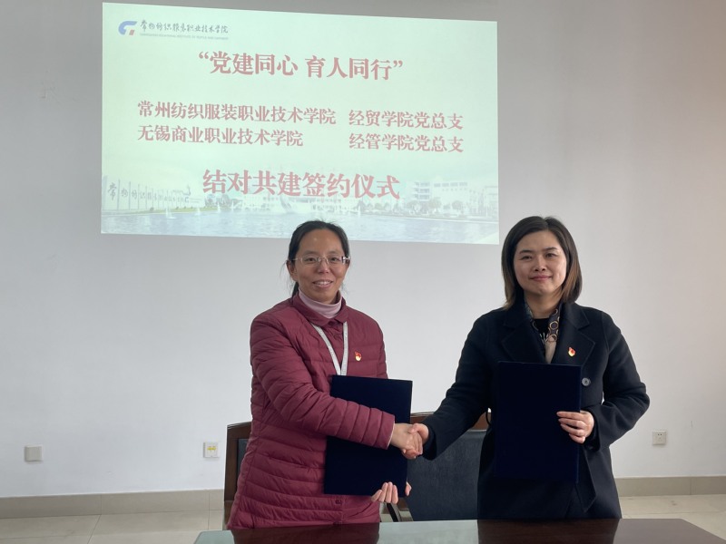 为深入贯彻落实党的二十大精神,进一步夯实基层党建工作基础,强化基层党组织政治功能,实现基层党组织之间优势互补、聚合发展,1月3日下午,常州纺织服装职业技术学院数字商贸学院党总支与无锡商业职业技术学院经管学院党总支开展党建结对共建活动,通过交流研讨、实地调研等方式,凝聚组织合力,推进基层党建创新发展。