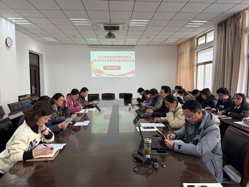 为深入学习贯彻习近平新时代中国特色社会主义思想、党的二十大和二十届三中全会精神,按照学校党委抓基层党建述职述廉述意识形态评议考核工作部署,12月25日,数字商贸学院党总支在4C412召开专题会议,开展党支部书记抓基层党建述职述廉述意识形态考核评议工作。校党委副书记、院长洪霄出席会议并讲话,纪委联系委员曹建军列席会议。会议由党总支书记林洁主持,数字商贸学院党总支委员、各党支部书记及考核评议组成员参加会议。