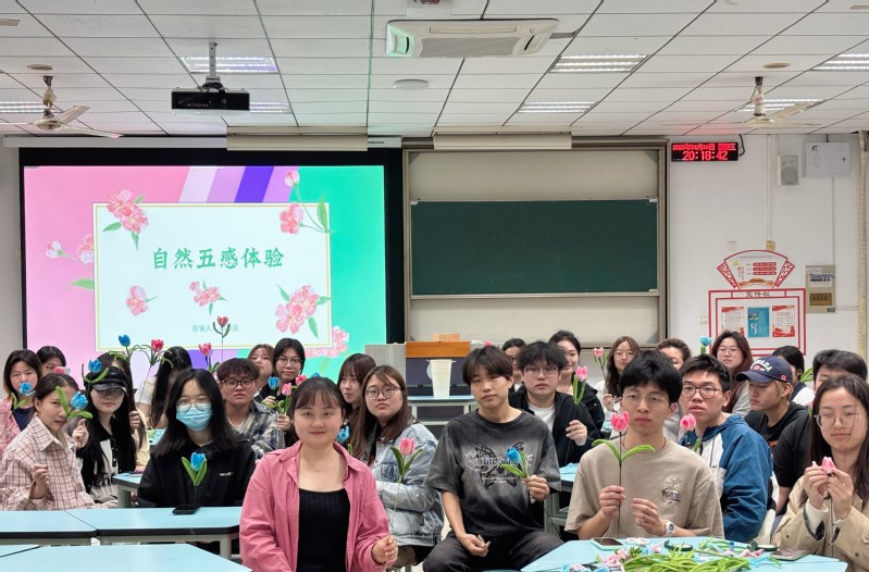为进一步提升心理委员的专业素养与心理服务能力,增强其对自然与生活的感知力,2025年4月16日晚,在学生工作处大学生心理健康教育中心的指导下,数字商贸学院心理站组织开展了一场别具一格的心理委员培训活动 ——“自然五感体验坊”。此次培训活动将自然五感体验与手工制作扭扭棒花相结合,让心理委员们在缓解自身压力的同时,帮助他们更好地理解和支持同学们的心理健康需求。