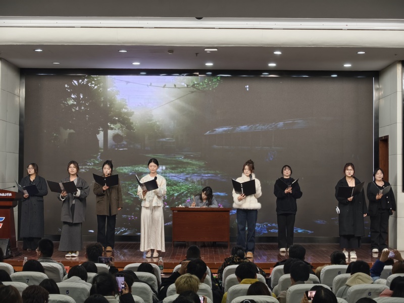 为充分展现数商学院2025级新生的青春风采,丰富校园文化生活,12月3日晚,由校团委主办、数字商贸学院承办的“经纬织梦”校园文化艺术节系列活动之“星耀数商新艺绽放”新生才艺秀在图文报告厅隆重举行。学院党总支书记林洁、党总支副书记乔正明、校团委挂职副书记聂洋、各二级学院团委书记莅临现场并担任评委。