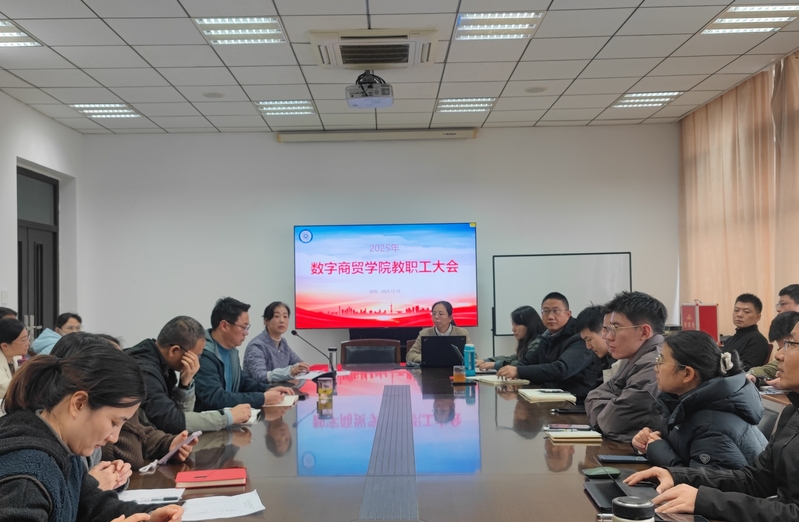 2025年12月10日下午,数字商贸学院在4C412会议室召开教职工大会。学院全体教职工参会,会议由党总支书记林洁主持。