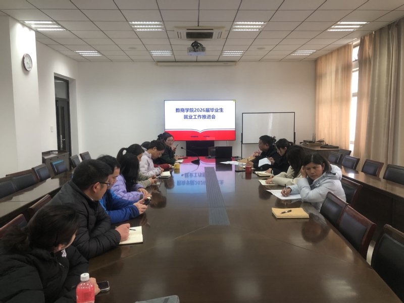 3月4日,数商学院召开了2026届学生就业工作推进会。会议由党总支副书记乔正明主持,学院2026届毕业班班主任、就业辅导员蒋文贤、党总支书记林洁参加了本次会议。