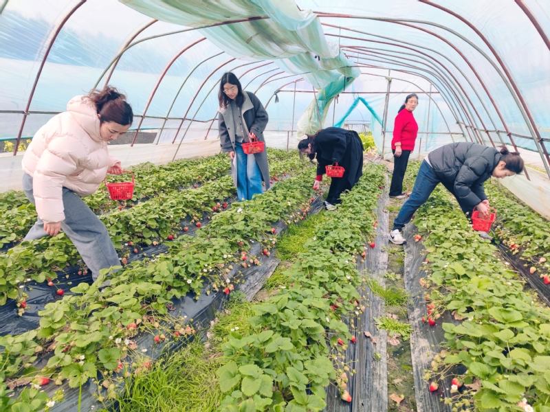 在“三八”国际劳动妇女节来临之际,数字商贸学院分工会于3月6日下午组织女教职工开展了以“‘莓’好春日•共绽芳华”为主题的草莓采摘踏青活动,共赴一场与春天的甜蜜之约。